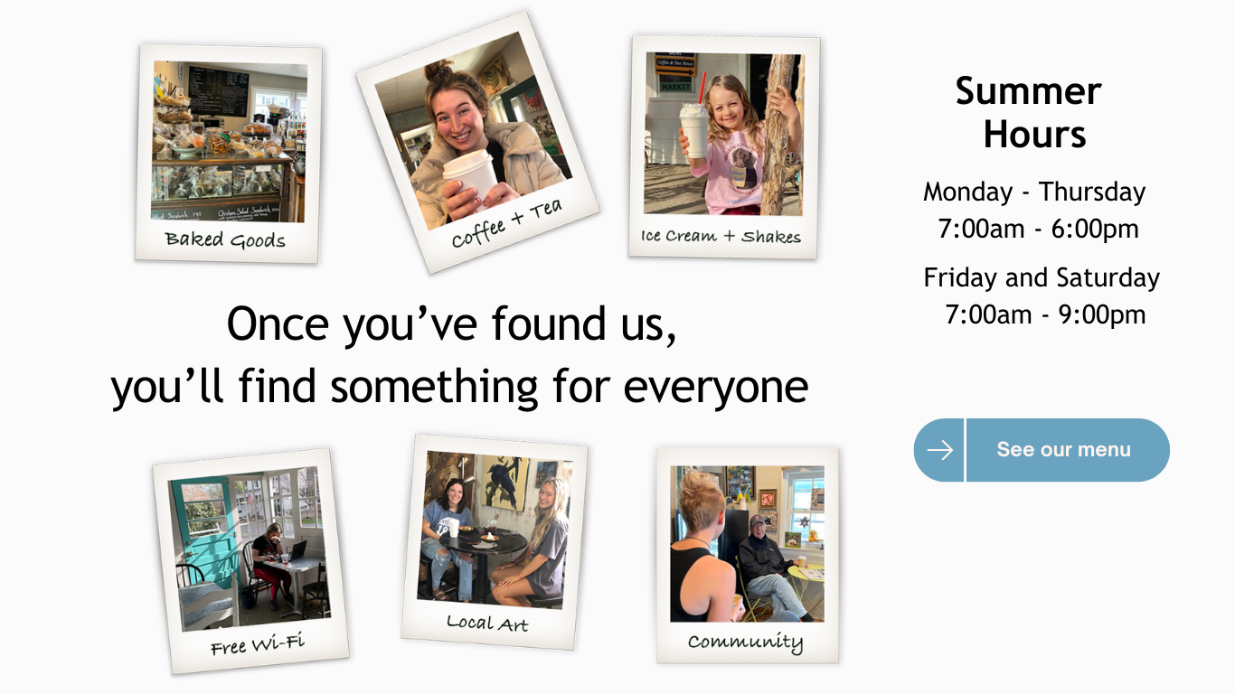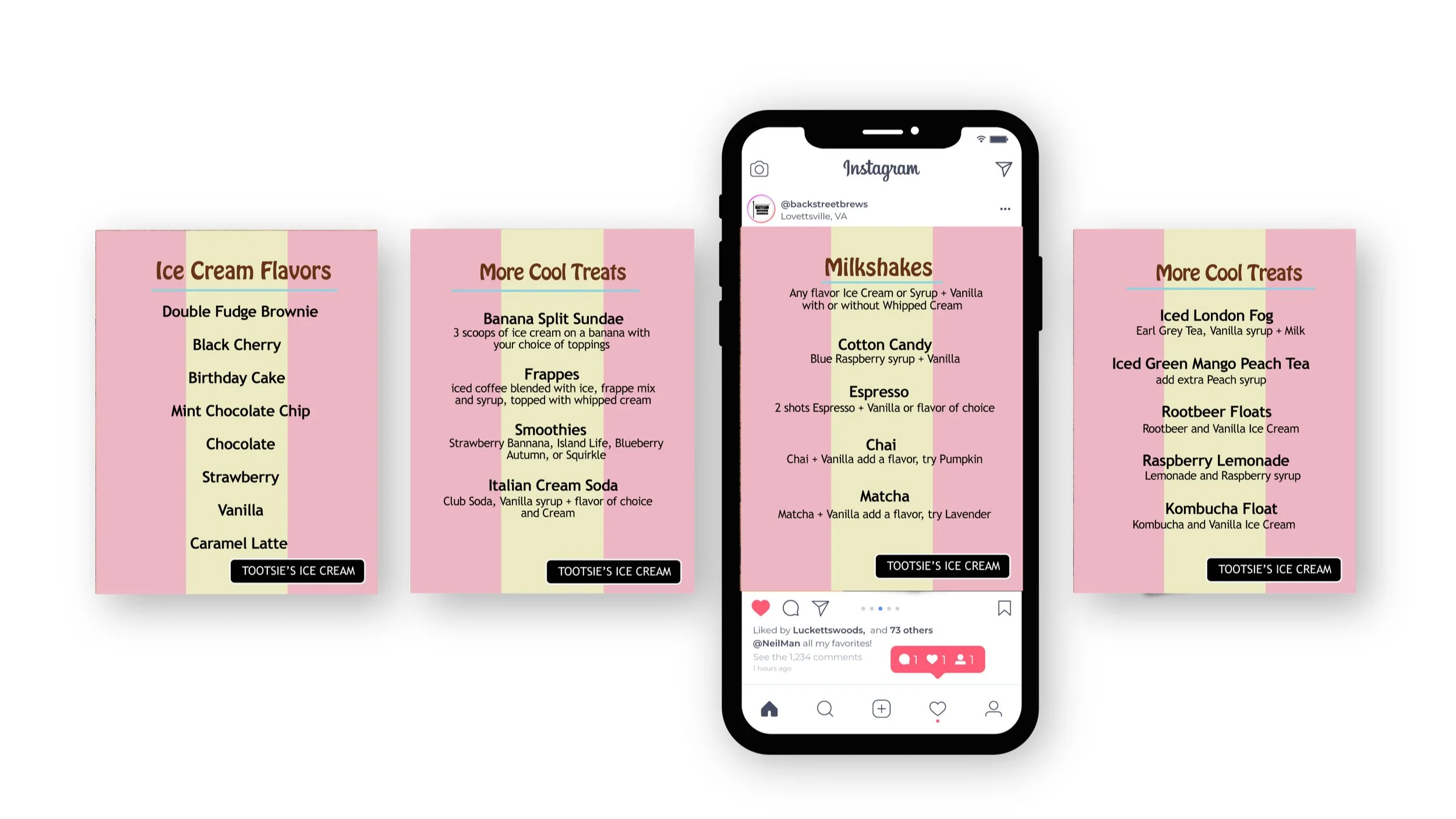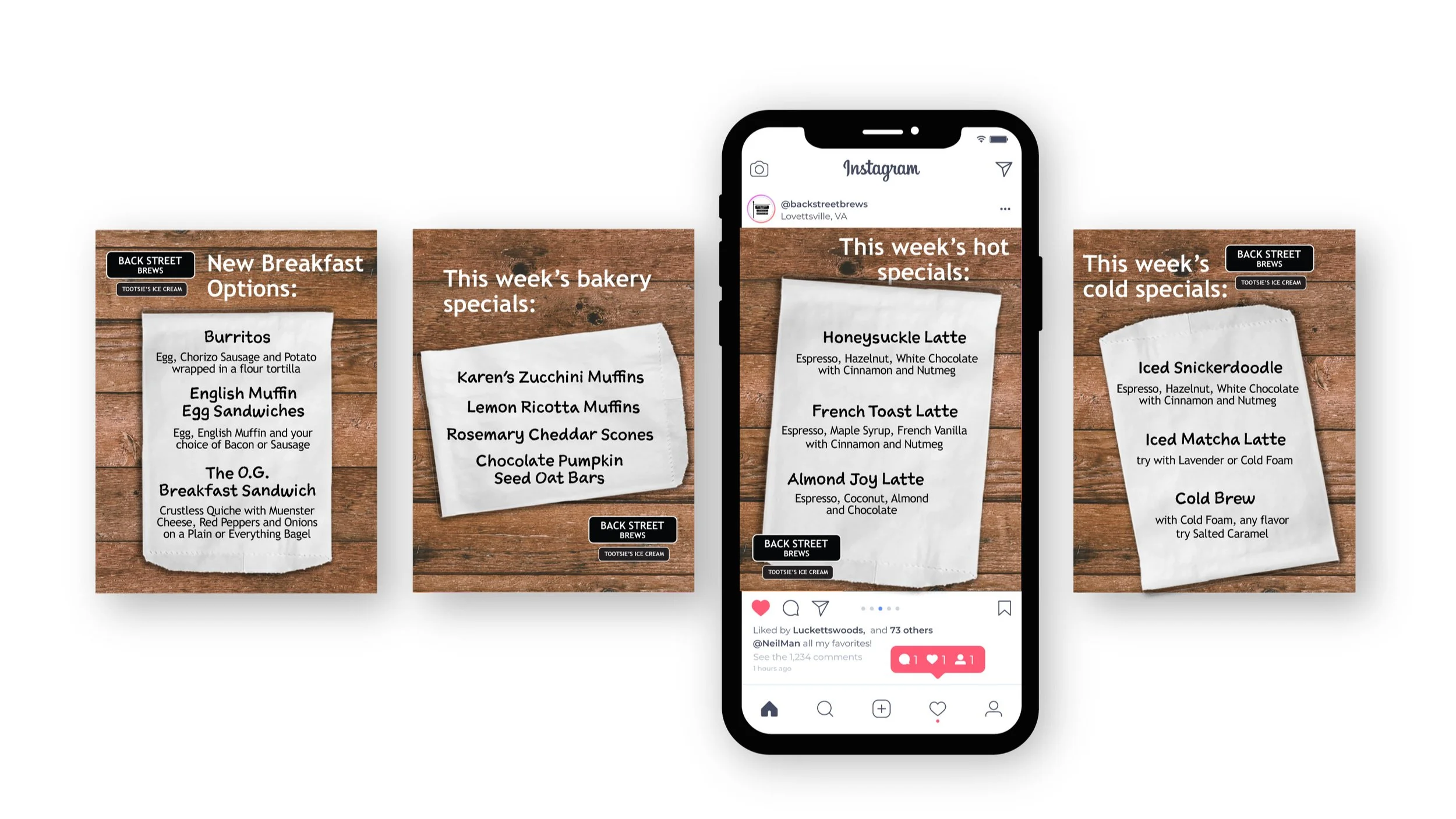 The owner needed a simple, easy to update template for an ever changing list of specials. This design calls back to the shop’s humble beginnings when specials were scrawled on a paper bag and taped to the wall.
