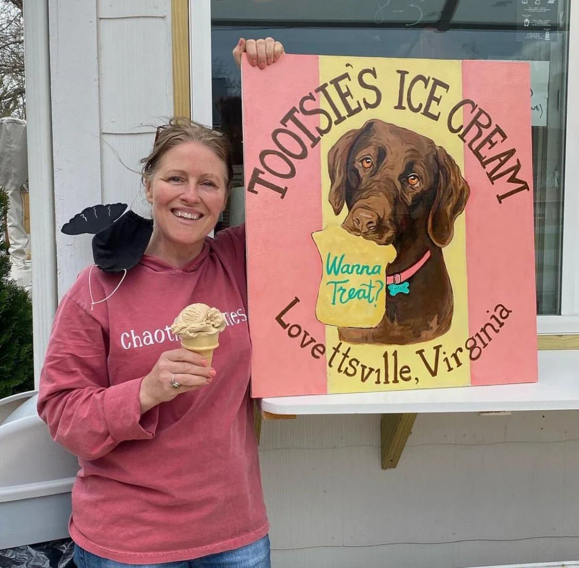A coffee shop expands its menu to include ice cream. Though the business has an established logo with good recognition, she wanted an additional logo that reflects a more lighthearted side of the business featuring her dog.