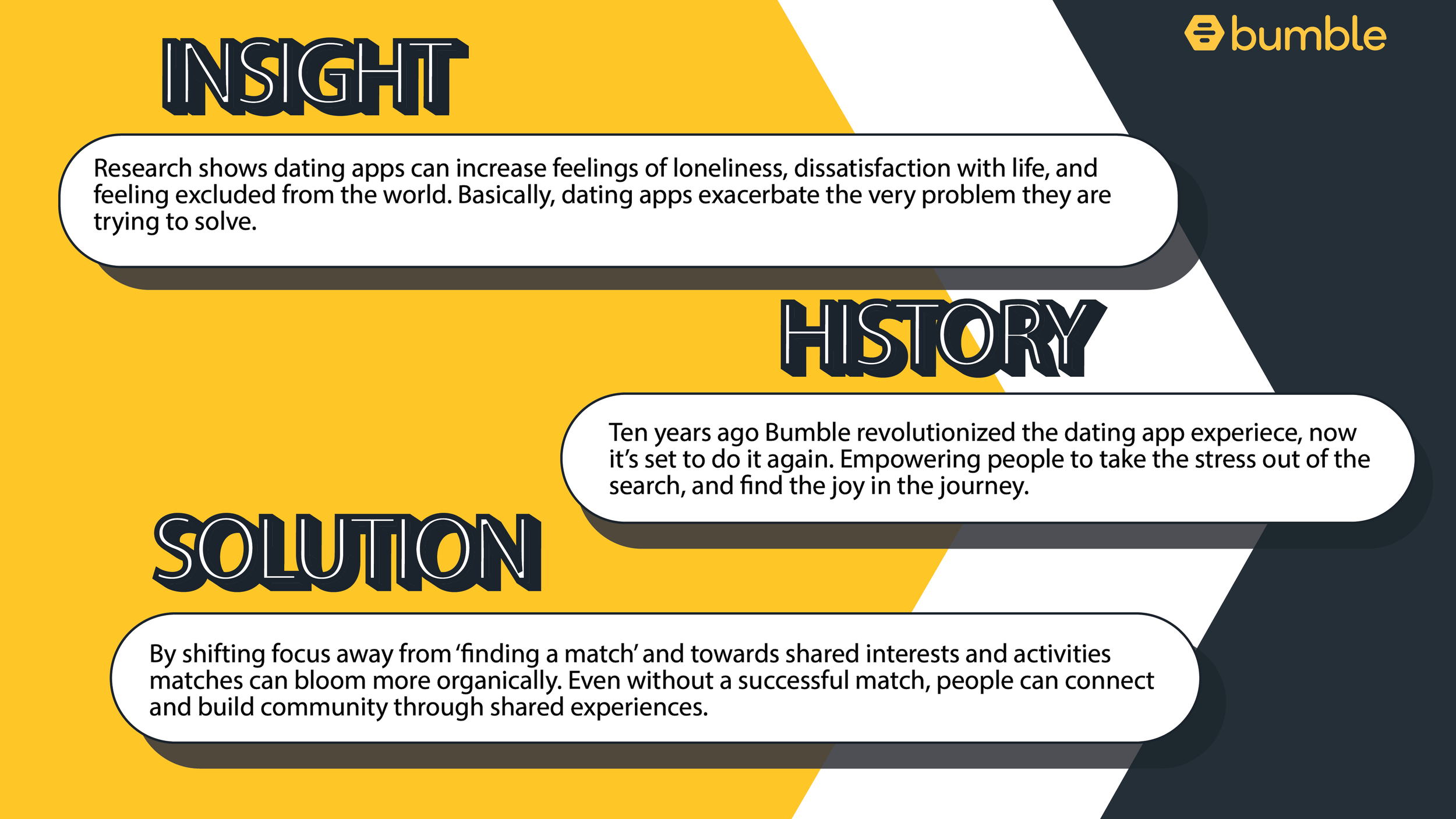 Bumble The Challenge: Create a campaign celebrating Bumble’s history while connecting with a new audience of 18-29 yr olds. Social Media